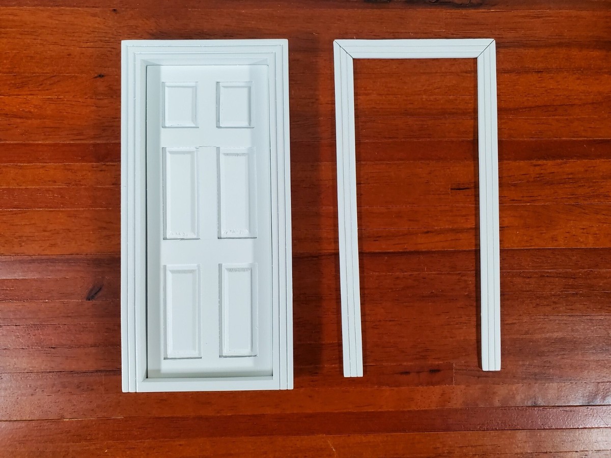 Dollhouse Door Interior White 6 Panel Includes Trim 1 12 Scale Miniature Ebay